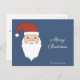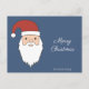 Una postal con la cabeza de Papá Noel y su gorra rojo con fondo azul de medianoche y textos de personalizable "Feliz Navidad", nombre de la familia y un mensaje en la espalda. Un poco de atención para mandar a tu familia y a tus amigos para las vacaciones de fin de año. También puede utilizarlo en el negocio y enviarlo a sus clientes.