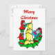 Aquí hay una imagen adorable de tres pequeños elfos trabajando juntos para iluminar su candelero de vacaciones. Una forma bonita de compartir tus saludos de vacaciones. Artista Jo-Ann Hayden