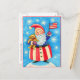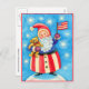 Tarjeta de Navidades "Papá Noel Americano con Bandera" Esta imagen muestra a un delicioso Papá Noel ondeando la bandera estadounidense en un brazo y sosteniendo un regalo de oso de peluche en el otro, mientras las copas de nieve caen suavemente a su alrededor. Personalizar el interior de esta tarjeta con el saludo de sus propios Navidades! Si prefiere tener una tarjeta en blanco, simplemente elimine el texto. También puede utilizar esta tarjeta como invitación de la Parte Navidad. ¡Sólo hay que añadir los detalles del fiesta!