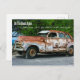 Una postal humorística con un viejo, golpeado, naufragado de un auto apenas un poco tímido de ser vigiloso, ¡no!