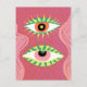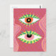Inspirado por el trabajo de Yayoi Kusama con sus puntos distintivos, creé este colorido junto con otros dos para recrear su atención a los detalles. Hice esto para mis amigos como regalos de Navidades, ¡fueron muy bien recibidos! Esta postal podría hacer un regalo único para cualquier ocasión, especialmente para aquellos en su vida que son aficionados a la historia del arte. Los ojos contrastan con el fondo cálido, rosa y rojo. Perfecto para quien se sienta atraído por el endurecimiento, el arte cósmico y los colores intensos.