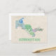 Mapa de la postal de Uzbekistán. ¡Echa un vistazo a mi página para más postales de país!