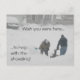 Postcard con hombres paleando fuerte nevada y el mensaje "Ojalá estuvieras aquí" ..."para ayudar con las palas!" El mensaje inverso es "Nos vemos en la primavera". Puede ser personalizado con mensaje personal. Excelente postal "mantente en contacto".