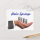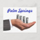 Esta es una postal de "Palm Springs" con una foto de un grupo de pequeños "resortes" en la "palma" de la mano de alguien.