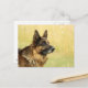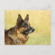 Perro pastor alemán lindo parado en un campo de heno grande.