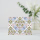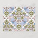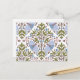 Esta postal presenta un diseño a mano de una polilla delicada y de diseños florales en hermosos tonos azul maíz y verde oliva.