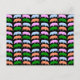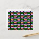 Esta postal contiene una serie de cerdos de diferentes colores de estilo personalizado. Cada uno tiene la cabeza preparada para engullir cualquier comida que pueda encontrar. Los cerdos se alternan entre rosa y azul y verde y naranja.