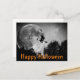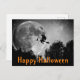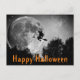 Fun Halloween diseño de postales presenta fotografía en blanco y negro de luna llena con silueta de bruja voladora y texto de personalizable superpuesto