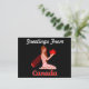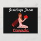 Un puerco canadiense lindo sosteniendo una hoja de arce roja. El texto dice Saludos desde Canadá. El texto de saludos puede ser personalizado por usted.