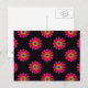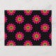 Esta postal presenta un diseño floral de arte fractal con colores rosa, amarillo, rojo y azul sobre un fondo negro. Se puede personalizar el color de fondo.