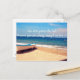 Postal de un barco a orillas de la playa con presupuesto vital.