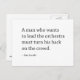 Un hombre que quiere dirigir la orquesta debe darle la espalda a la multitud - cita motivacional de Max Lucado en una postal.