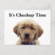 Esta postal recordatoria dice: "Es hora de chequeo" Una postal perfecta para recordar a los clientes de su clínica sus chequeos. Con una preciosa fotografía de un cachorro Golden Retriever, esta tarjeta de recordatorio es fácilmente personalizable al rellenar la parte de atrás con toda la información de su cliente y de su negocio.