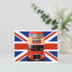 Postal de recuerdo de Inglaterra/Londres con bandera británica y emblemático autobús londinense. El mismo diseño también está disponible como tarjetas de felicitación, postales, insignias, imanes, Pegatinas, camisetas, Gorras, aprones, llaveros. No deje de visitar la tienda de artículos para ver todo lo que se ofrece. Todo el trabajo de ©Caroline Webb. ¡Envíame un mensaje si te gustan los productos! No olvides que puedes PERSONALIZAR estos productos - cambia de color, cambia o agrega texto, ¡es todo tan fácil!
