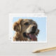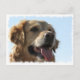 Perro de Golden Retriever con la lengua saliendo de la postal.