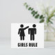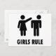 Los chicas gobiernan la postal. ¿Quieres mostrar quién es el jefe? Hacerles sonreír con este irónico obsequio de Chicas humorísticos. Tanto los niños como los Chicas los amarán. ¡Garantizado para que hablen! Añade un poco de poder a tu mensaje con esta tarjeta postal de la regla de los Chicas graciosos.