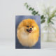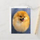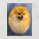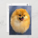Pomeranian, un dulce y dorado color dorado, es retratado con un fondo azul en este retrato original.