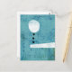 El resumen de la tabla de buceo presenta formas geométricas blancas que sugieren un rebote de bola en una tabla de submarinismo con puntos negros que implican una trayectoria. Todo sobre un fondo pintado de azul.