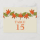 Sencilla y elegante postal número de tabla fronteriza de hojas de otoño con una hilera de hojas de otoño rústicas en naranja y verde. ¡Este diseño de moda es perfecto para tu boda de otoño! Fácil de personalizar, simplemente agregue los números de tabla apropiados en el campo de texto proporcionado. Para encontrar opciones de personalización adicionales, haga clic en "Personalizar".
