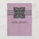 Postal con número de tabla de borde de medallón, elegante y elegante, con un medallón metálico de arte digital y un borde de tres rayas sobre un fondo morado claro. Esta postal audaz y elegante es perfecta para un boda con igual audacia y estilo. Fácil de personalizar, simplemente agregue los números de tabla apropiados en el campo de texto proporcionado. Haga clic en "Personalizar" para encontrar opciones de personalización adicionales como cambiar fuentes o tamaño de texto.