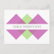 Postal con número de tabla de Boda geométrico moderno y de moda con un diseño triangular elegante en fucsia radiante y verde lima. De fácil personalizar, este diseño sencillo pero elegante se puede personalizar añadiendo los números de tabla correspondientes en el campo de texto proporcionado. Haga clic en "Personalizar" para encontrar más opciones de personalización.