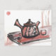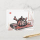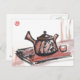 Una tetera roja con mango lateral grande espera... Pintura de pincel de Ren Adams.