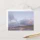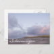 Postal de coloridas nubes sobre dunas, playa y mar del Norte durante una puesta de sol en la playa de Scheveningen en La Haya en la costa de los Países Bajos con el texto: 'Scheveningen'.