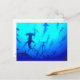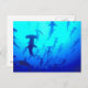 Sharks Postcard contiene una foto de una escuela de tiburones martillo nadando.