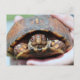 Box Las tortugas son tortugas de tamaño medio, terrestres - 4,5-6 pulgadas (11,5-15,2 cm) - con una cubierta alta y redondeada que es oscura con muchas esquirlas amarillas o naranjas. El plastrón (al fondo de la cáscara) está bisagra, permitiendo que la tortuga de la caja cierre completamente su cáscara