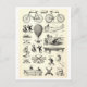 Esta postal es una reproducción de un ilustracion vintage del catálogo de la American Type Founders Company, "The Desk Book of Type", de bloques de tipo disponibles para periódicos, libros, revistas, etc. Muestra modos de transporte, como una bicicleta y un globo de aire caliente, así como pasatiempos como deportes y bailes.