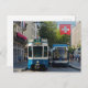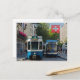 Los icónicos tranvías azules de Zúrich con banderas suizas ondeando por encima