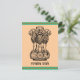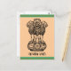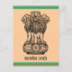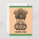 El antiguo mantra de Mundaka Upanishad "la verdad solo triunfa" escrito en sánscrito. Emblema de la India compuesto por 3 leones en un pedestal con el mantra escrito debajo