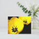 Primer plano de una flor de tulipanes amarillos que muestra el conjunto de estambres y polen sobre un fondo negro