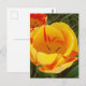 ¿Qué puede crear un mejor diseño floral primaveral que los pétalos amarillos vívidos salpicados de rojo escarlata contra el fondo de hojas verdes y follaje de estos tulipanes primaverales? Esta es una impresionante imagen de tulipanes amarillos llentos llena del sol y el color de la primavera.