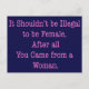 En un texto rosado se lee: "No debería ser ilegal ser mujer, después de todo viniste de una mujer".