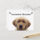 Esta postal "Recordatorio de Vacunación" es perfecta para recordar a los clientes de su clínica las vacunas necesarias que sus mascotas puedan necesitar. Con una preciosa fotografía de un cachorro Golden Retriever, esta tarjeta de recordatorio es fácilmente personalizable al rellenar la parte de atrás con toda la información de su cliente y de su negocio.