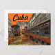 Vagones de locomotoras y trenes oxidándose en el centro de La Habana, Cuba, postal
