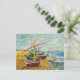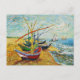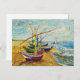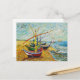 Postal de Van Gogh Fishing Boats. Óleo sobre lienzo 1888. Esta es una de las pinturas más bonitas del puerto deportivo de Van Gogh. El trabajo incluye cuatro barcos de pesca sentados en la playa con sus velas caídas. Los barcos de pesca son rojos, verdes y azules. Un regalo de bonito para los aficionados a Van Gogh, pinturas en velero, el post-impresionismo y el arte francés.