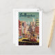 Esta postal es una reproducción de un afiche de viaje vintage de San Francisco con un vagón de tranvía, con el puente Golden Gate en el fondo.