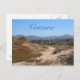 Esta postal de viaje muestra una fotografía de dunas en la playa de Ventura, California.