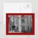 fotografía en blanco y negro y borde rojo de una escena callejera en Vieux Quebec, Canadá