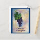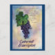 Pintura de uvas de vino de Sauvignon: El cuadro muestra uvas de vino de Cabernet Sauvignon. La cita dice: "Un vino tinto con un distintivo sabor a currant negro con toques de tabaco, cedro y menta. Tiene un estilo bien redondeado y puede ser considerado el rey de las uvas rojas". Se representa en acuarela.