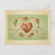 Bonita y romántica imagen restaurada de dos pájaros blancos de amor y corazón hecho de rosas con borde dorado de fibra. Tarjeta de saludo y franqueo coincidente disponible.
