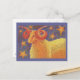 Aries el carnero se para contra un cielo nocturno lleno de estrellas doradas. Cartel de incendio, 21 de marzo - 20 de abril (puede haber una variación en las fechas). Postcard con un diseño de personalizable dorado, naranja, morado y azul en la parte delantera para que usted pueda personalizar con su propio texto, imágenes e ideas. Un lápiz original de color y un dibujo de tinta metálica de Jess Perry.