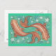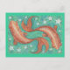 Piscis, el pez, nadando en un río lleno de estrellas. Señal de agua, 20 de febrero - 20 de marzo (puede haber una variación en las fechas). Postcard con un diseño de personalizable naranja, azul y verde para que usted pueda personalizar con su propio texto, imágenes e ideas. Un lápiz original de color y un dibujo de tinta metálica de Jess Perry.