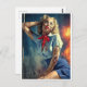 This whimsical 1940's zombie pin-up model strikes a captivating pose, her glowing eyes creating an irresistible undead charm. With torn clothing and hints of decay, she still exudes playful confidence—blending retro glamour with a delightfully ghoulish twist.