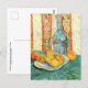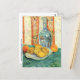 Postal de arte fino con la pintura post-impresionista de Vincent van Gogh, que era un artista holandés, Still Life with Decanter and Lemons on a Plate (1887). Una mesa con una jarra de cristal y fruta en un plato sobre fondo de papel pintado.