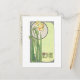 Vintage ca 1914 estilo deco moderne Easter greeting con daffodils minimalistas amarillos sobre fondo verde lima y gris con saludo de Pascua.