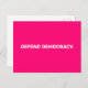 Defender la democracia tipografía moderna tarjeta postal rosa caliente. Los derechos de la mujer son iguales a los derechos humanos. Mi cuerpo mi útero mi elección, Pro elección postales minimalistas rosa caliente y blanco cálido moderno estilo minimalista moderno simple y elegante. El movimiento a favor del derecho al aborto es un movimiento sociopolítico en Estados Unidos que apoya la opinión de que una mujer debe tener el derecho legal a un aborto electivo, lo que significa el derecho a terminar su embarazo. Derechos de aborto por elección, para apoyar la lucha política de las mujeres por los derechos reproductivos y el control sobre sus propios cuerpos. Mantener el aborto seguro legal, apoyar la defensa de Roe contra Wade.