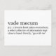 Vade Mecum (literalmente, "ve conmigo") es un libro favorito que se toma por todas partes o una selecta colección de información que se mantiene cerca de cada uno. Como parte de nuestra serie "Definiciones", hemos representado la frase y su significado en texto negro, y la hemos estampado en una variedad de artículos para que los verbívoros puedan disfrutar. ¡Difunde la palabra!